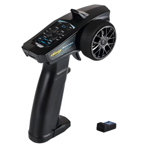 Die Funkfernsteuerung von Carson bietet alles, was sich besonders Einsteiger und kleine RC-Fans wünschen – leichte Handhabung, gute Griffigkeit und geringes Gewicht. Zudem bietet die Steuerung viele wichtige Funktionen, die auch bei den größeren Modellen enthalten sind. So verfügt sie über Trimmung, Servo Reverse, Dual Rate für beide Kanäle, eine Failsafe Funktion, eine LED Akkuanzeige sowie einen funktionsfähigen dritten Kanal via Knopf.